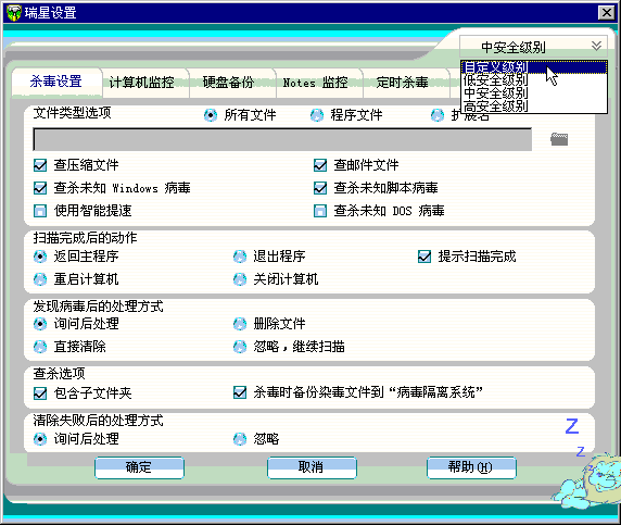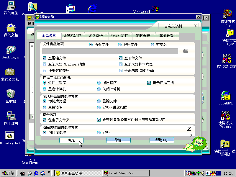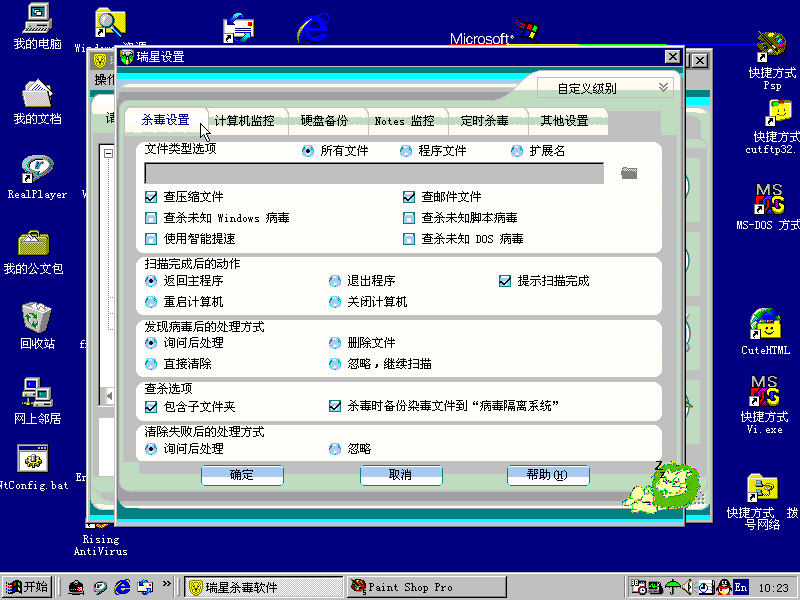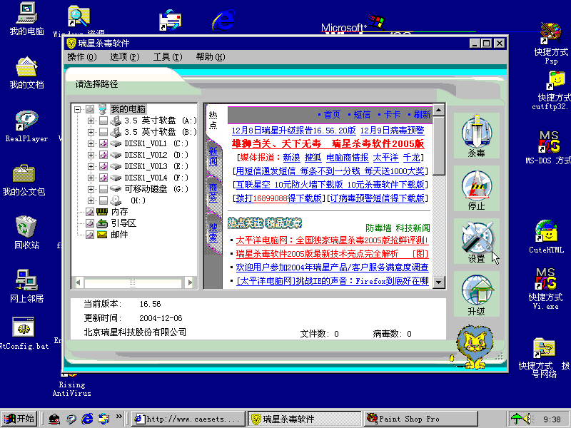 For example: Rising AntiVirus (瑞星杀毒)is good for version 15.37 (year 2003).